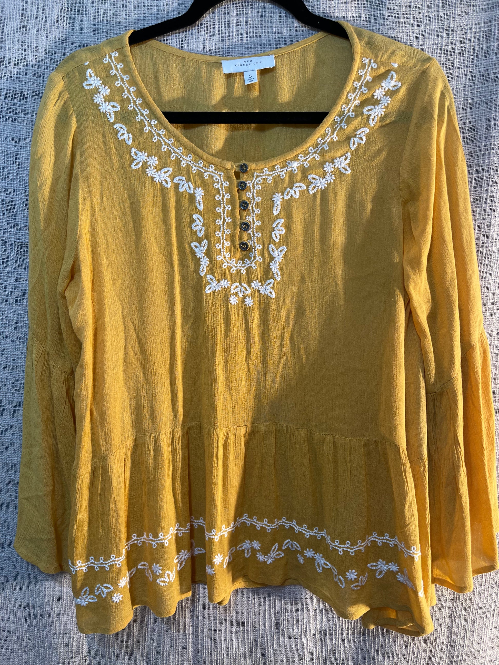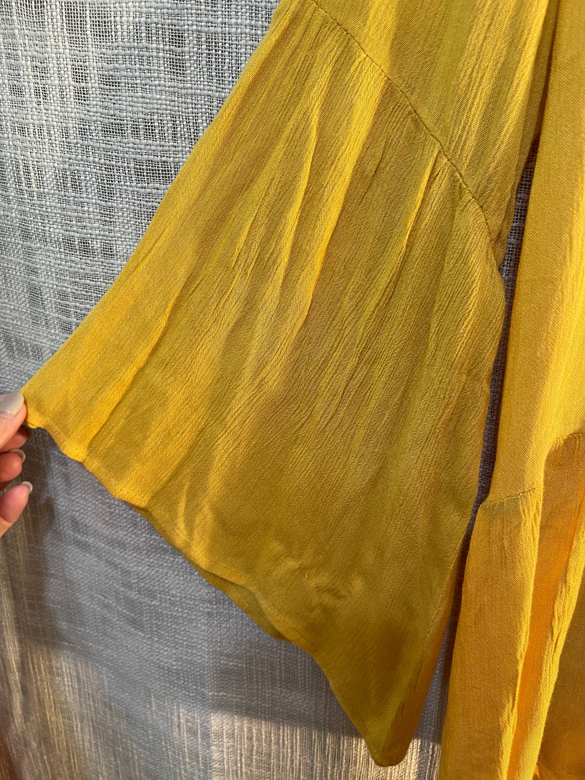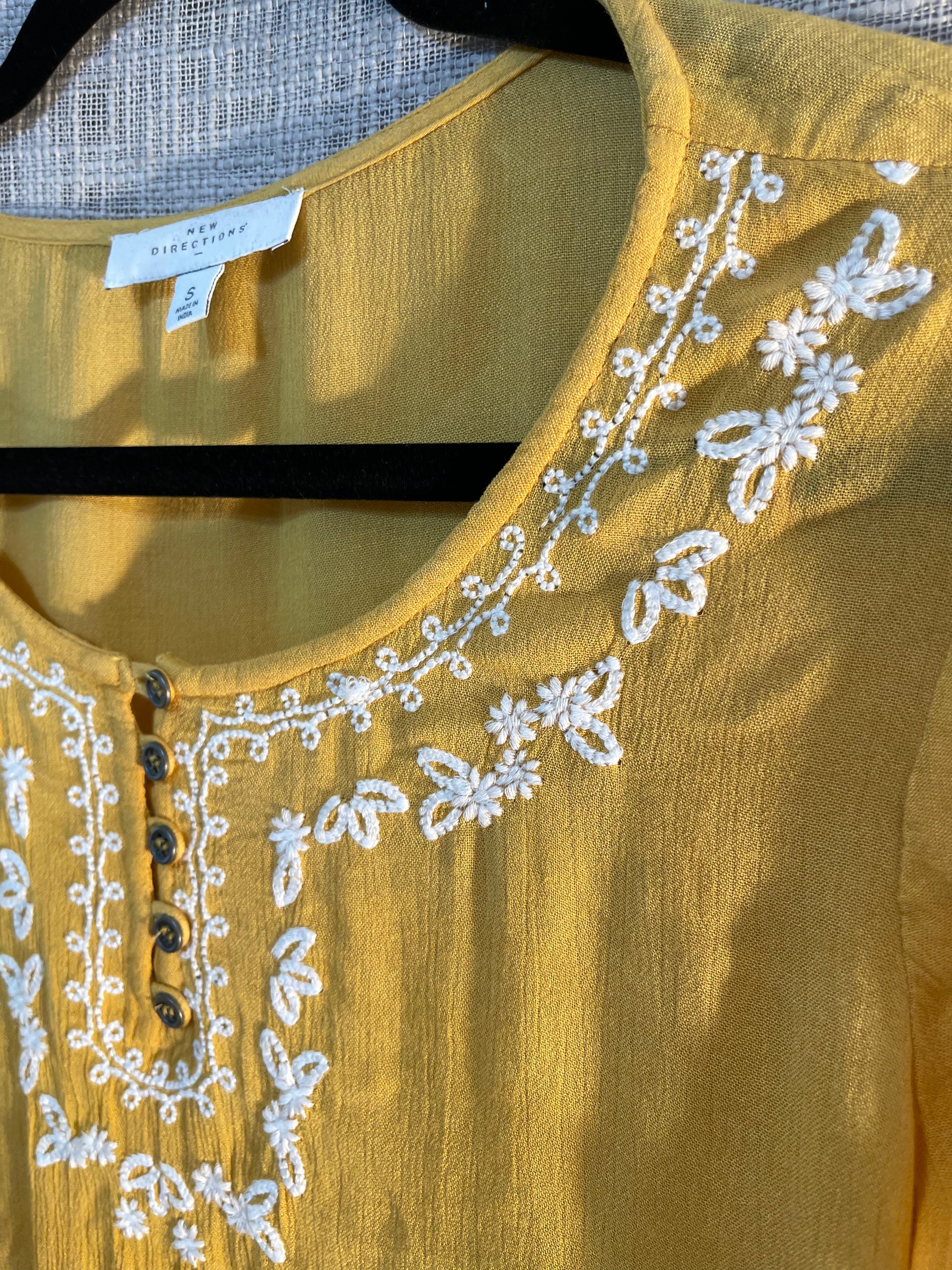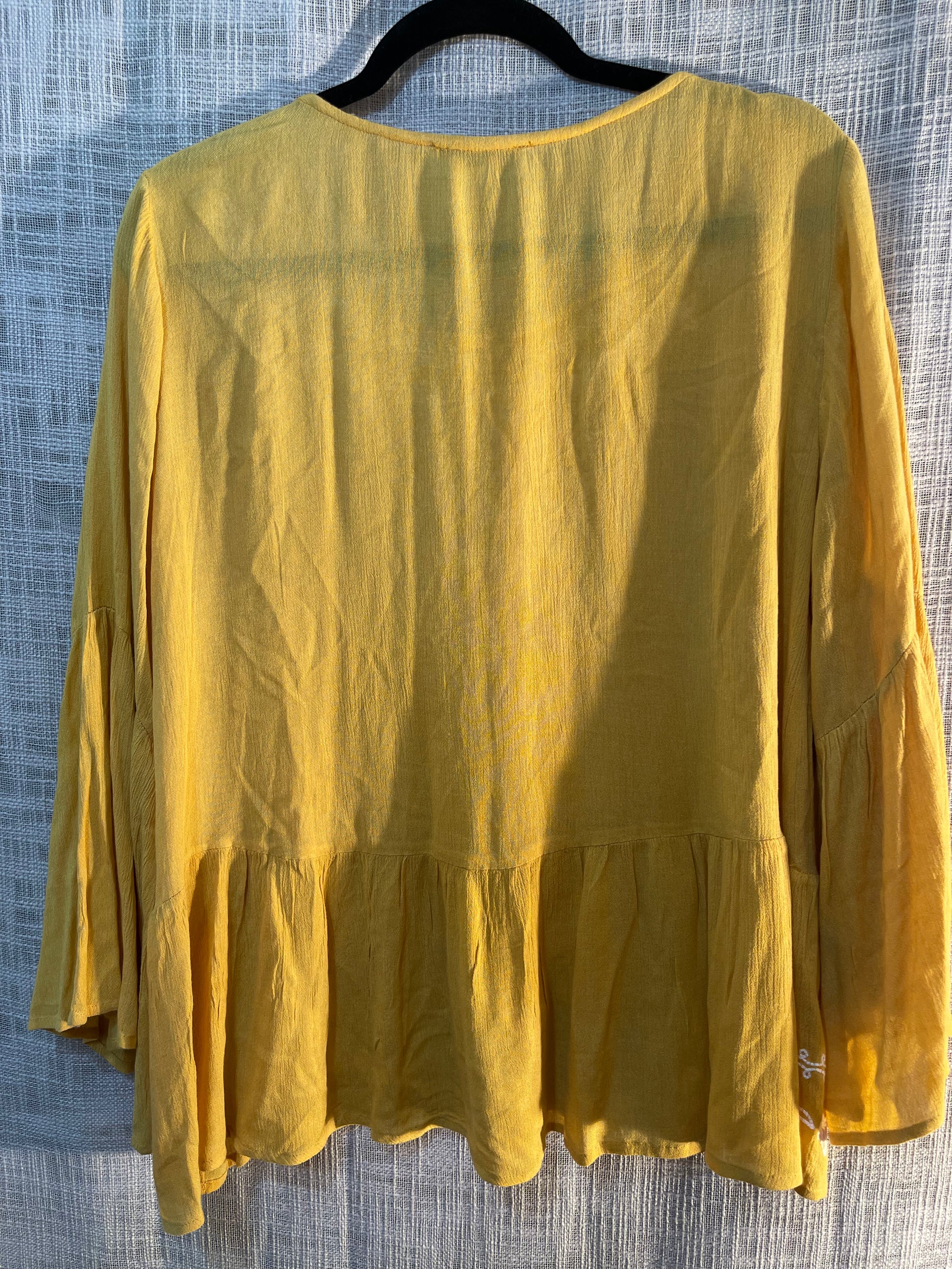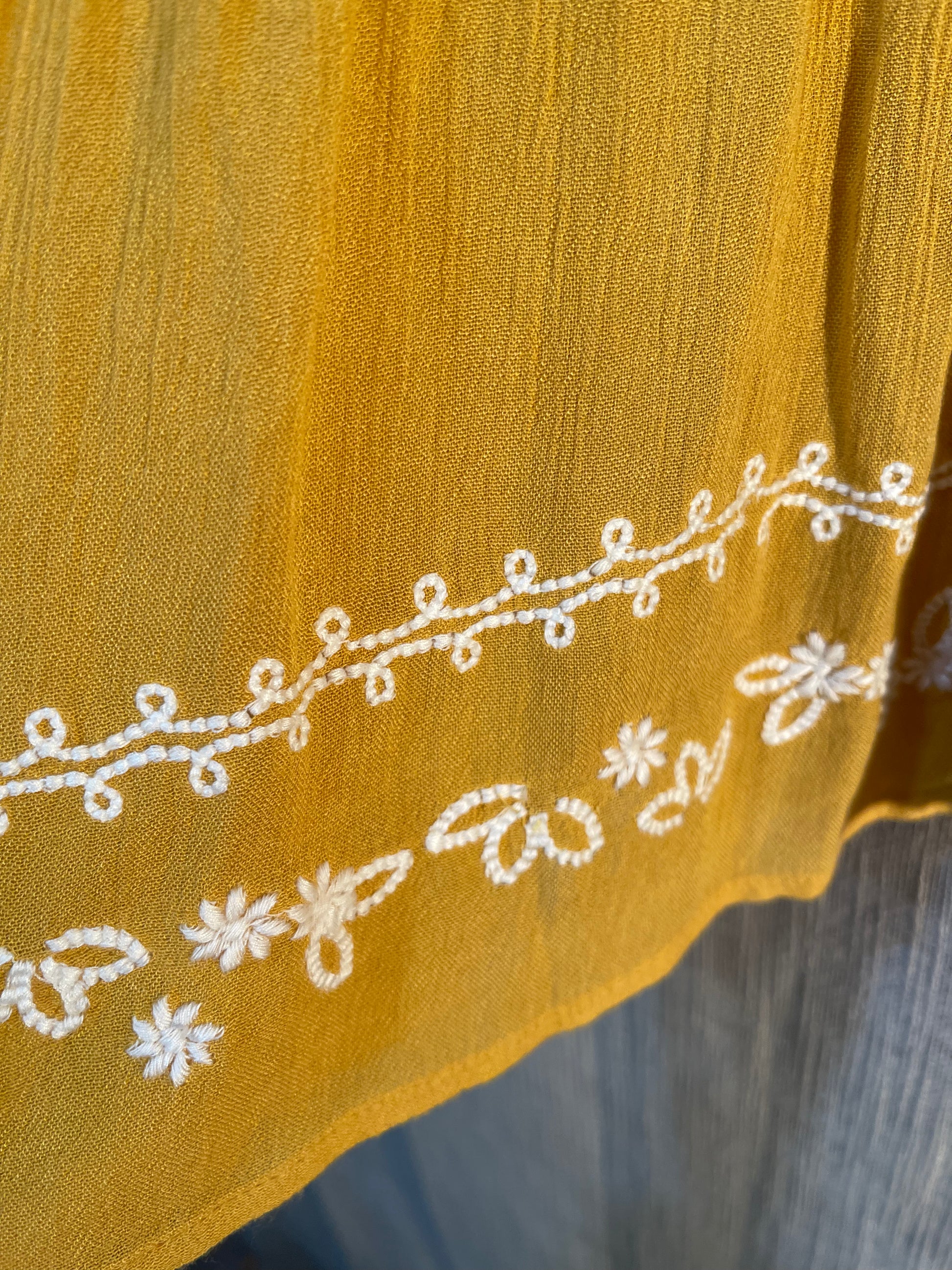 Boho flowy top, sunny gold shirt, embroidered blouse