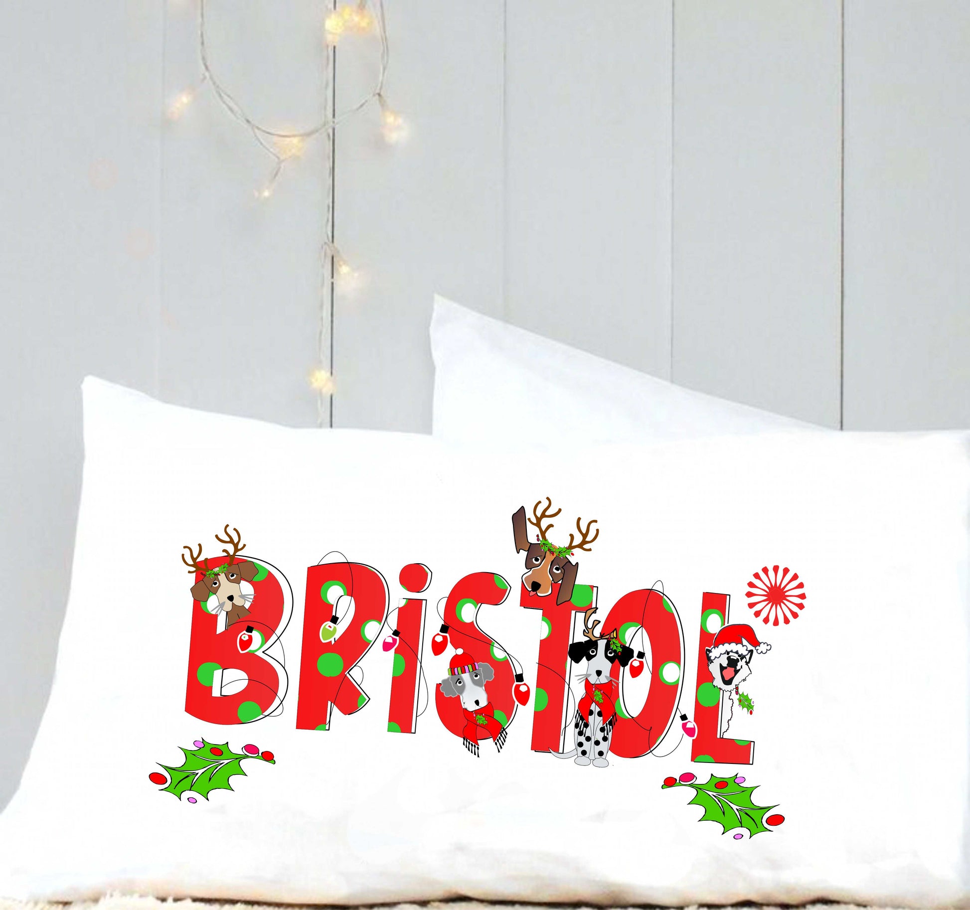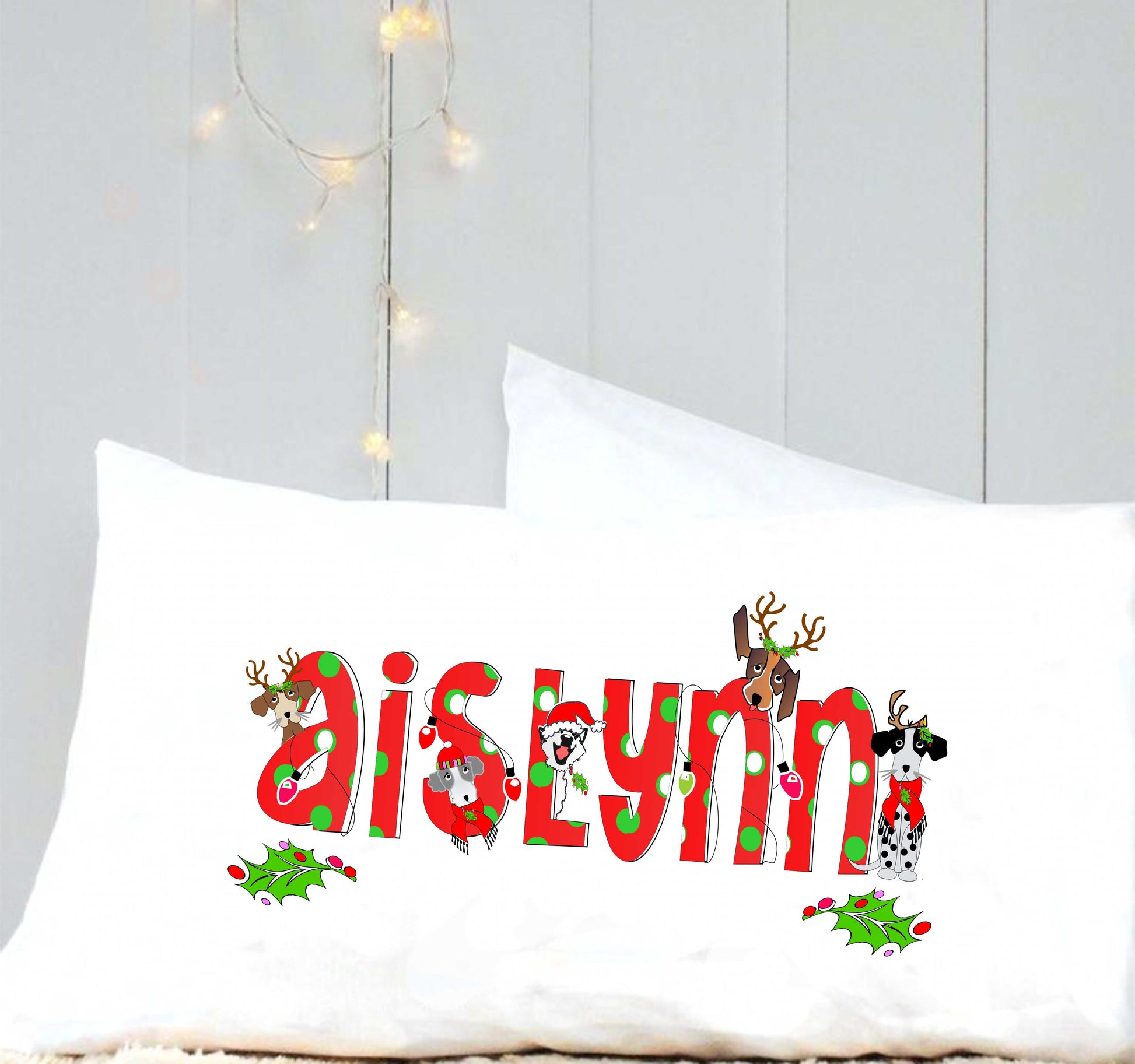 Nothing could paw-sibly be cuter than this personalized Christmas puppy pillow All dog lovers will be excited to add this holiday cheer to their room. The wonder and magic of Christmas come alive with all the little details and preparations. This pillow case is customized especially for you. You can give us all the details for personalization in the notes section of your order.