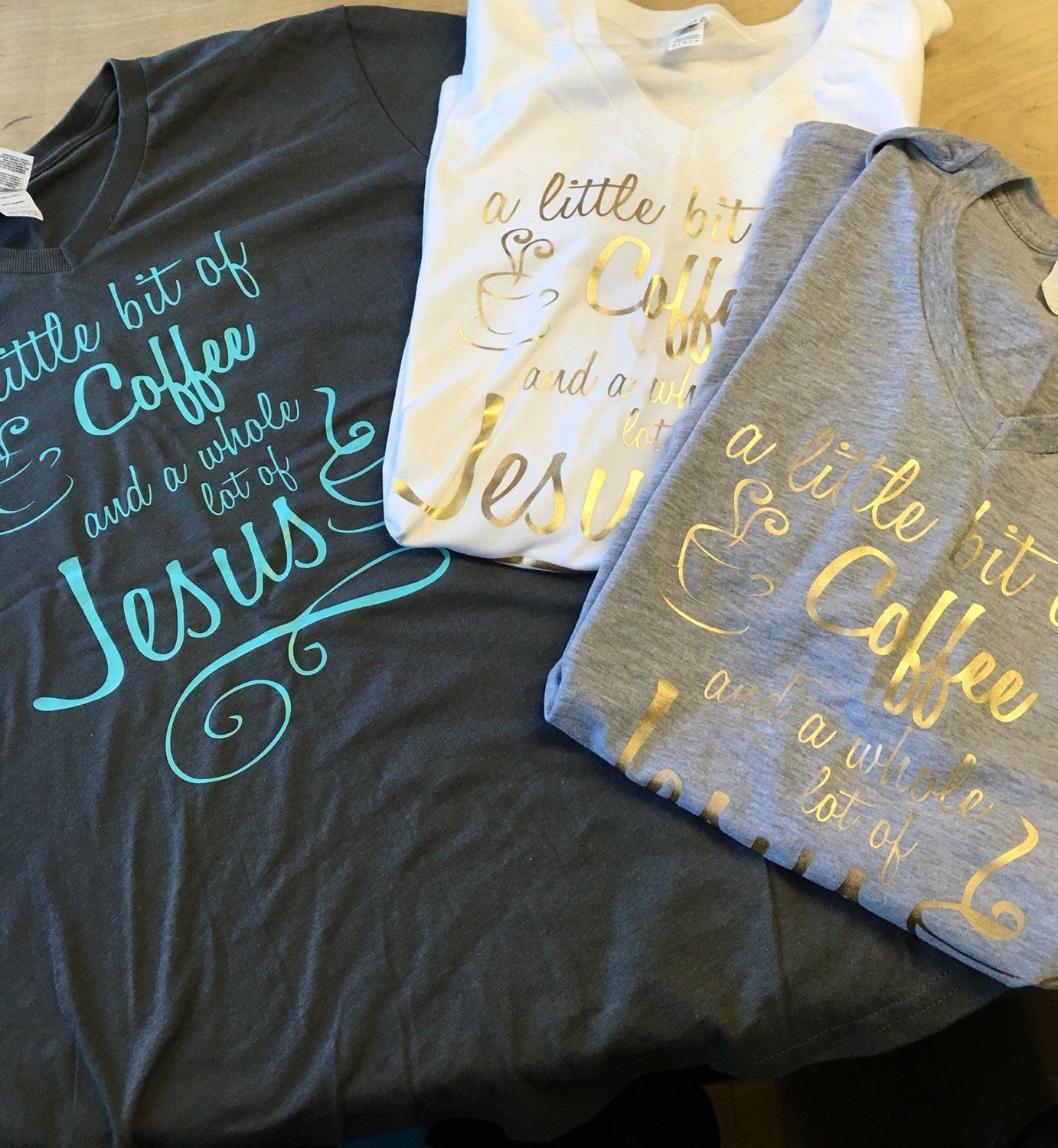 A little bit of coffee and a whole lot of Jesus t shirt.