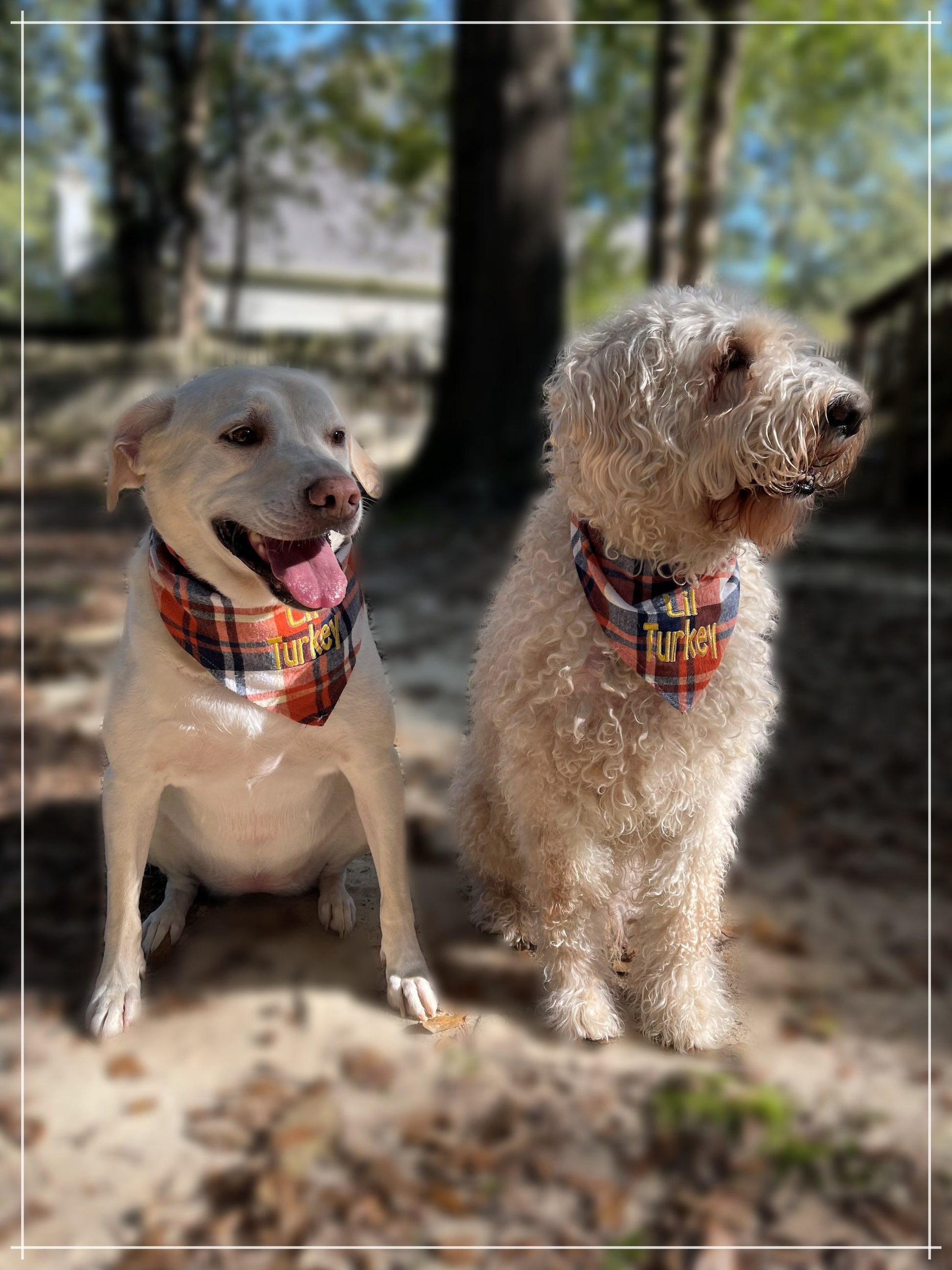 Plaid flannel dog bandana. Blue and orange plaid dog bandana. Embroidered with lil turkey on the front is perfect for Fall pictures with your pup. thanksgiving bandana.
