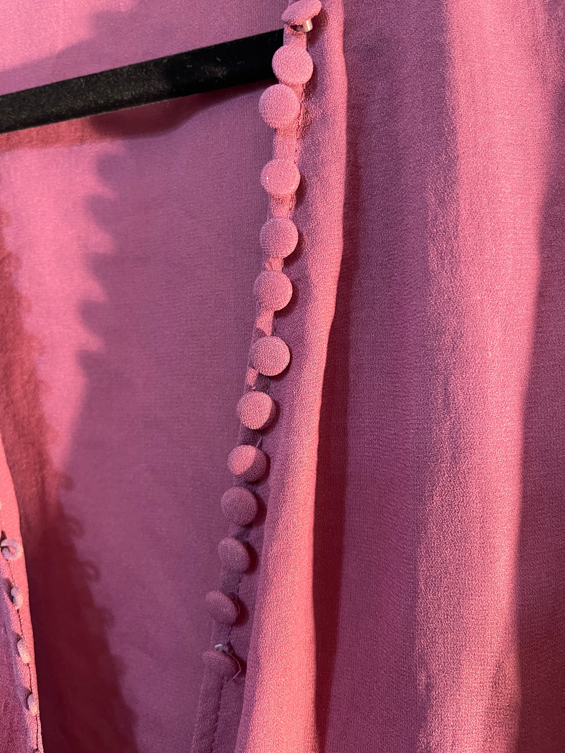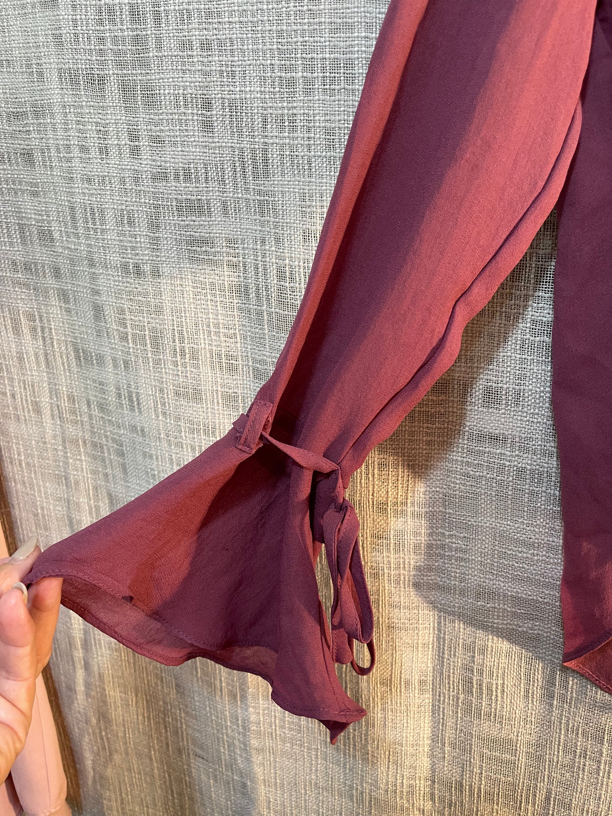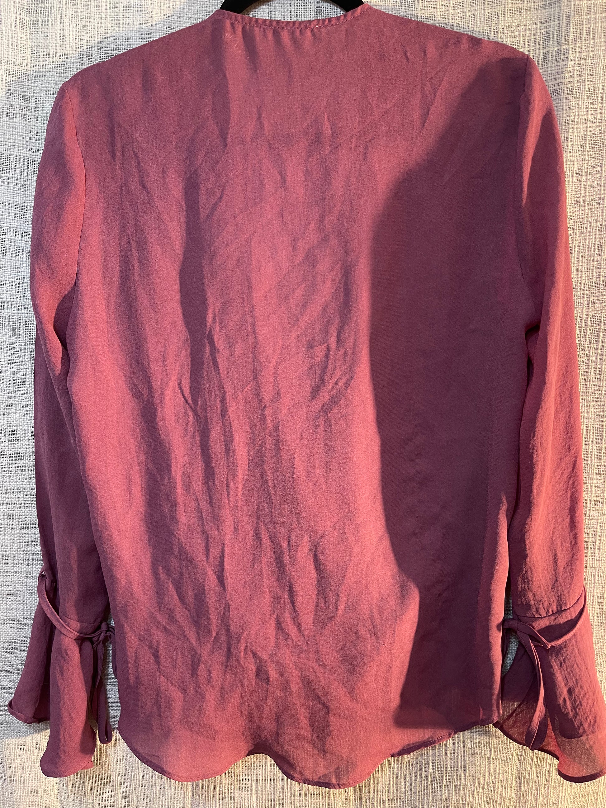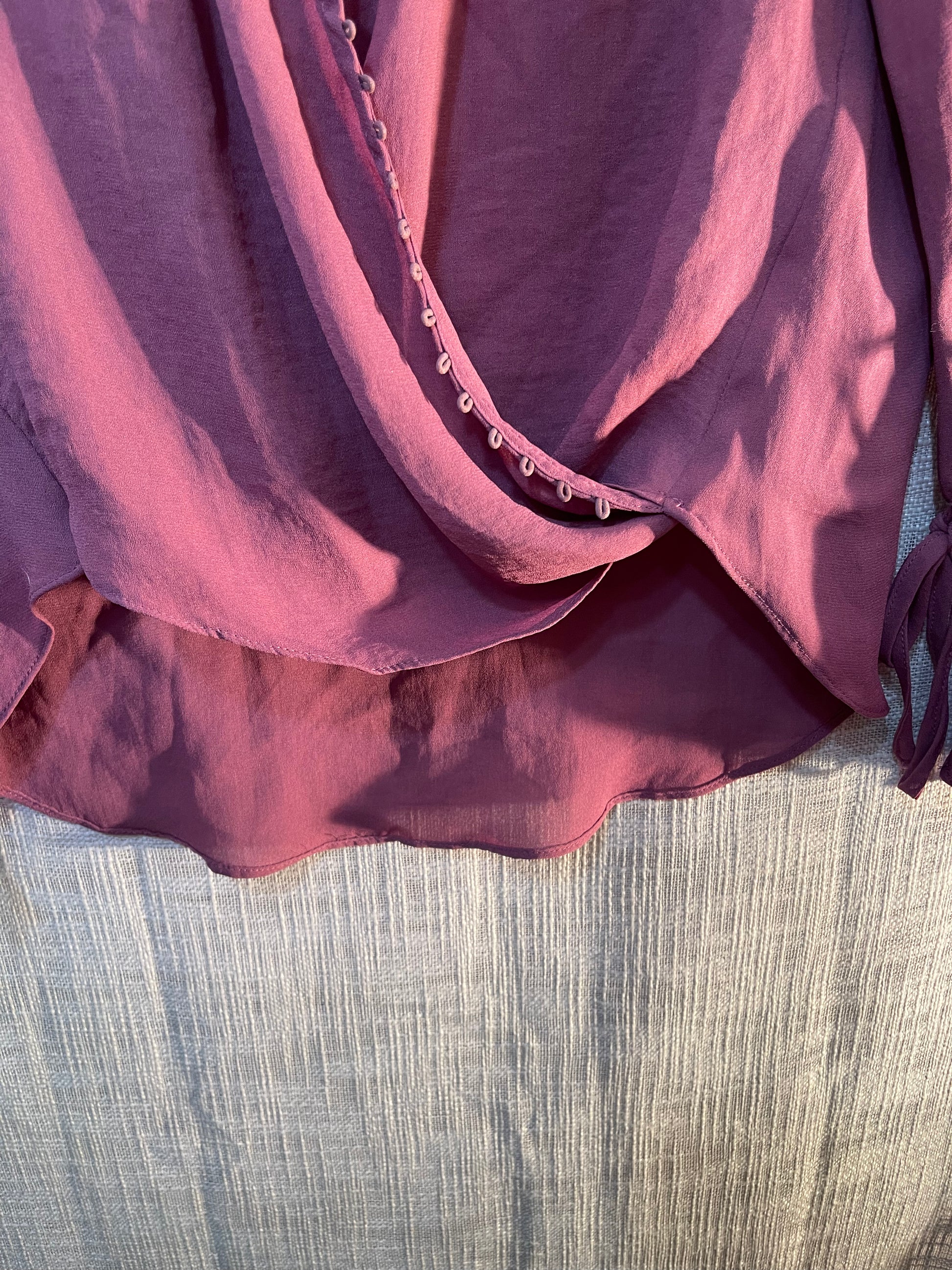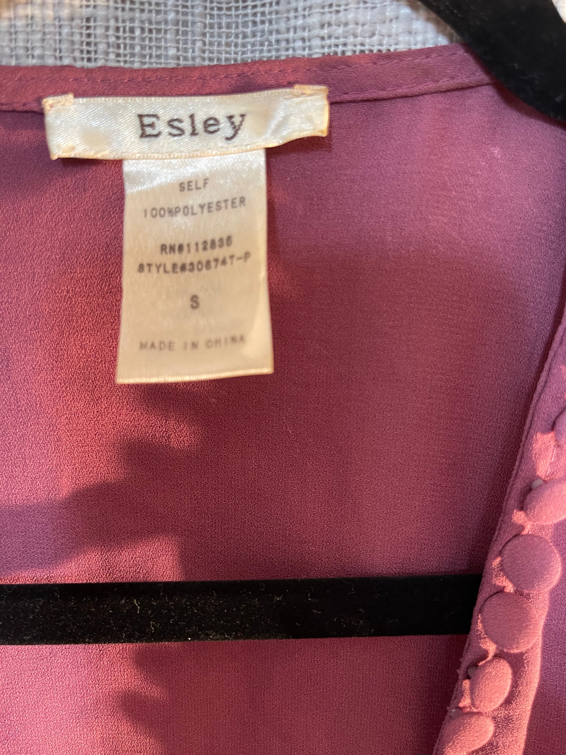 Take your style to a whole new level in this wrap blouse by esley. The fit and flow of this top along with the understated elegance of the front button detail add the style of a well made piece. The bottom flutter ruffle of the long sleeves adds a feminine touch that does not go unnoticed. Our sustainable gently used clothing allows you to add value to your wardrobe without breaking the bank. Create a style all your own with our gently used collection.