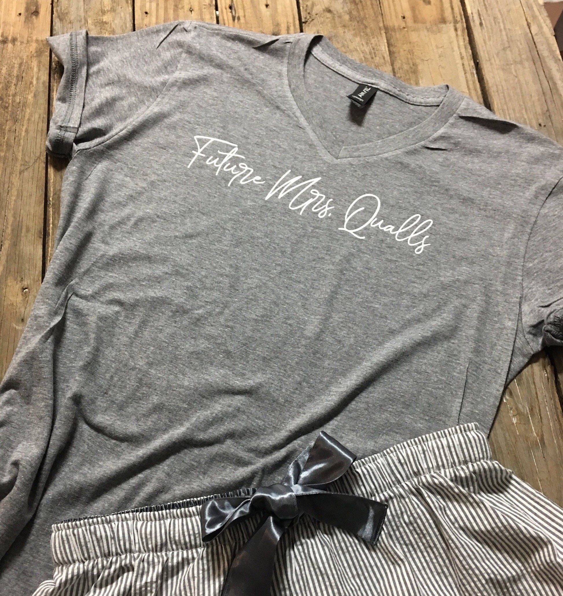 Celebrate your wedding planning with a great future Mrs. Shirt. We all live to celebrate the bride to be during this special time in her life. This shirt will be customized with her future name. It is a super soft roomy unisex t shirt. Sized xs-2xl