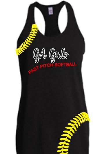 customized softball tank with your teams name. This racer back tank is a feminine fit and available in xs-xxl. You can add your players name or number to the back