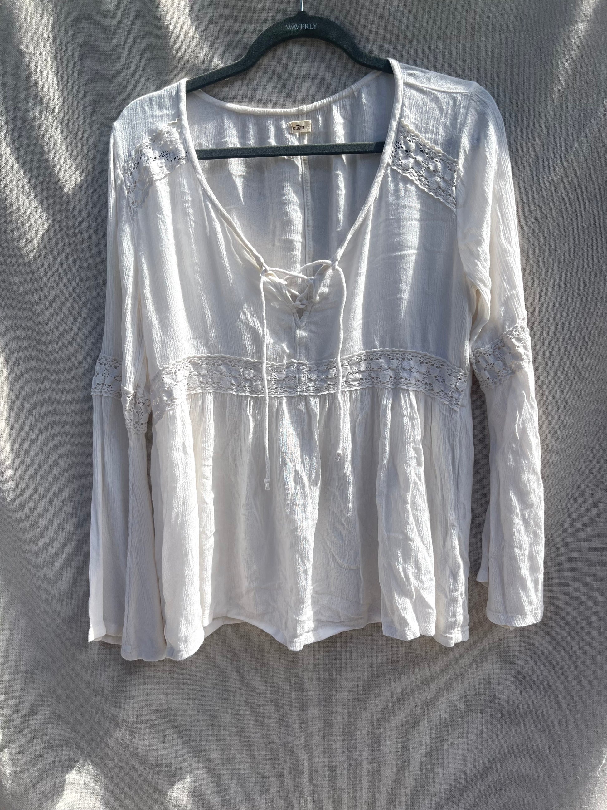 Hollister gauzy top, white gauzy shirt