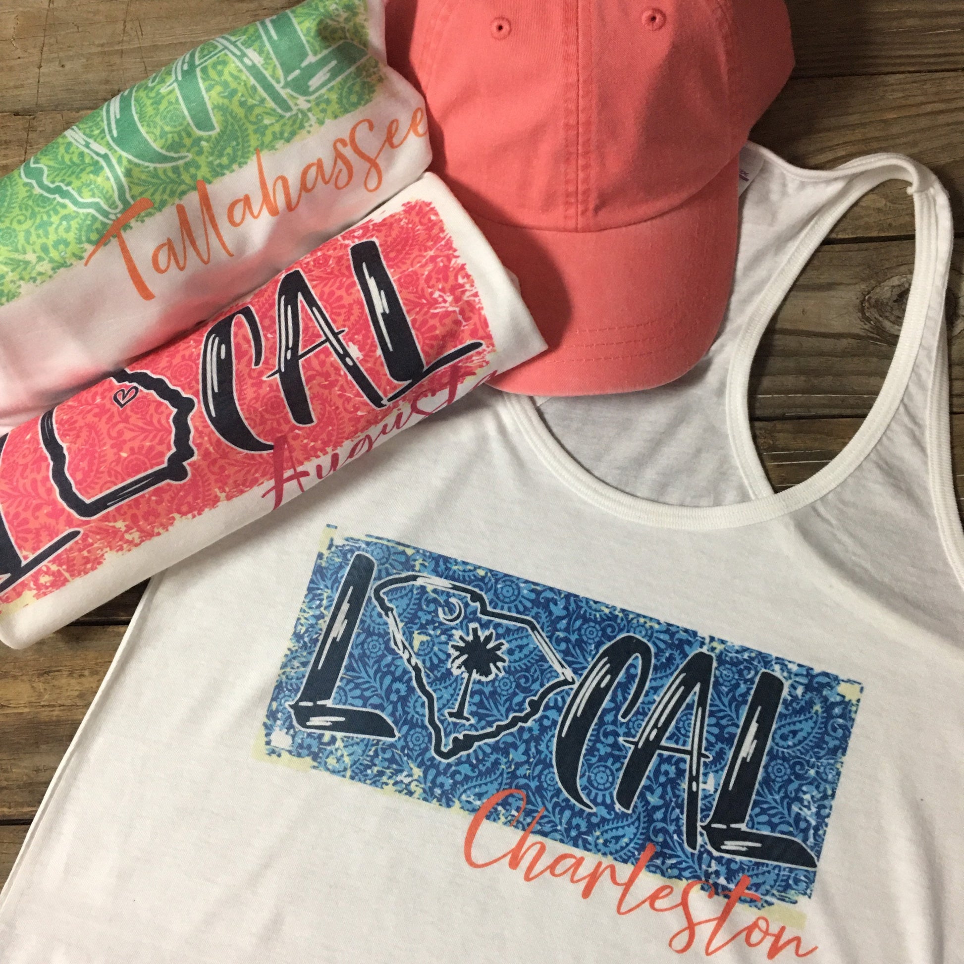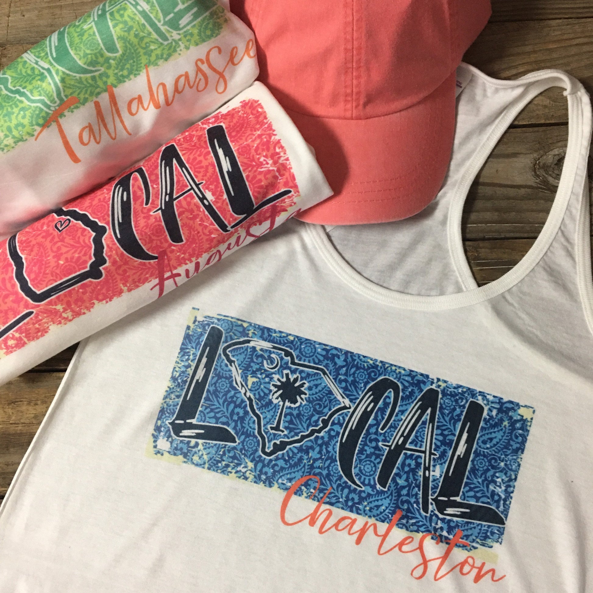 Alabama, Georgia, Louisiana, South Carolina, Texas, Michigan, any state that you would like can be on your shirt. Augusta Georgia, Charleston South Carolina, Fort Worth Texas, Dallas Texas, Tallahassee Florida etc....