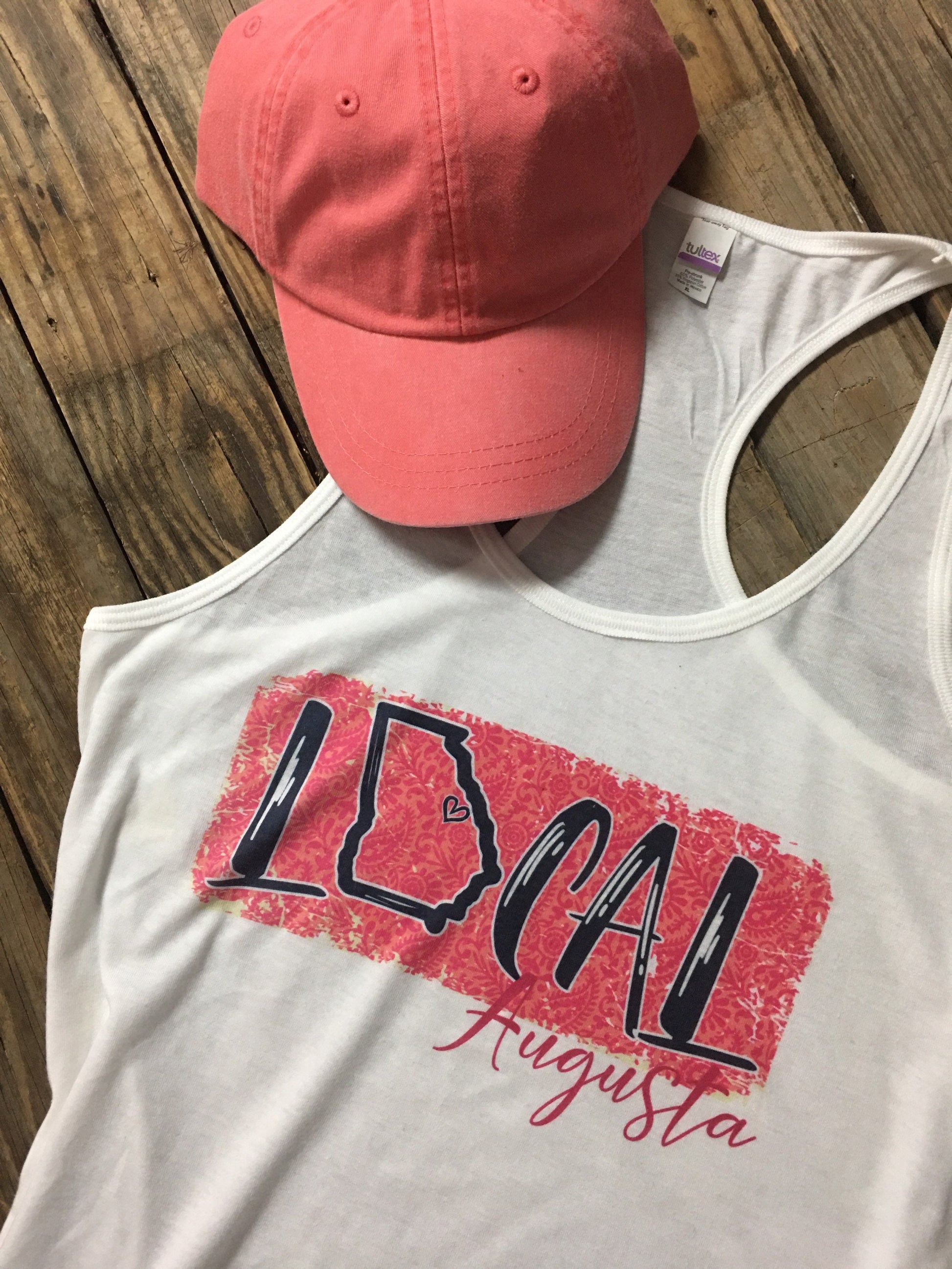 Customize your hometown tank top. Great graphics for a fun tank or t shirt to celebrate your favorite place. Local shirt Sublimated designs are bright and bold for this tank.
