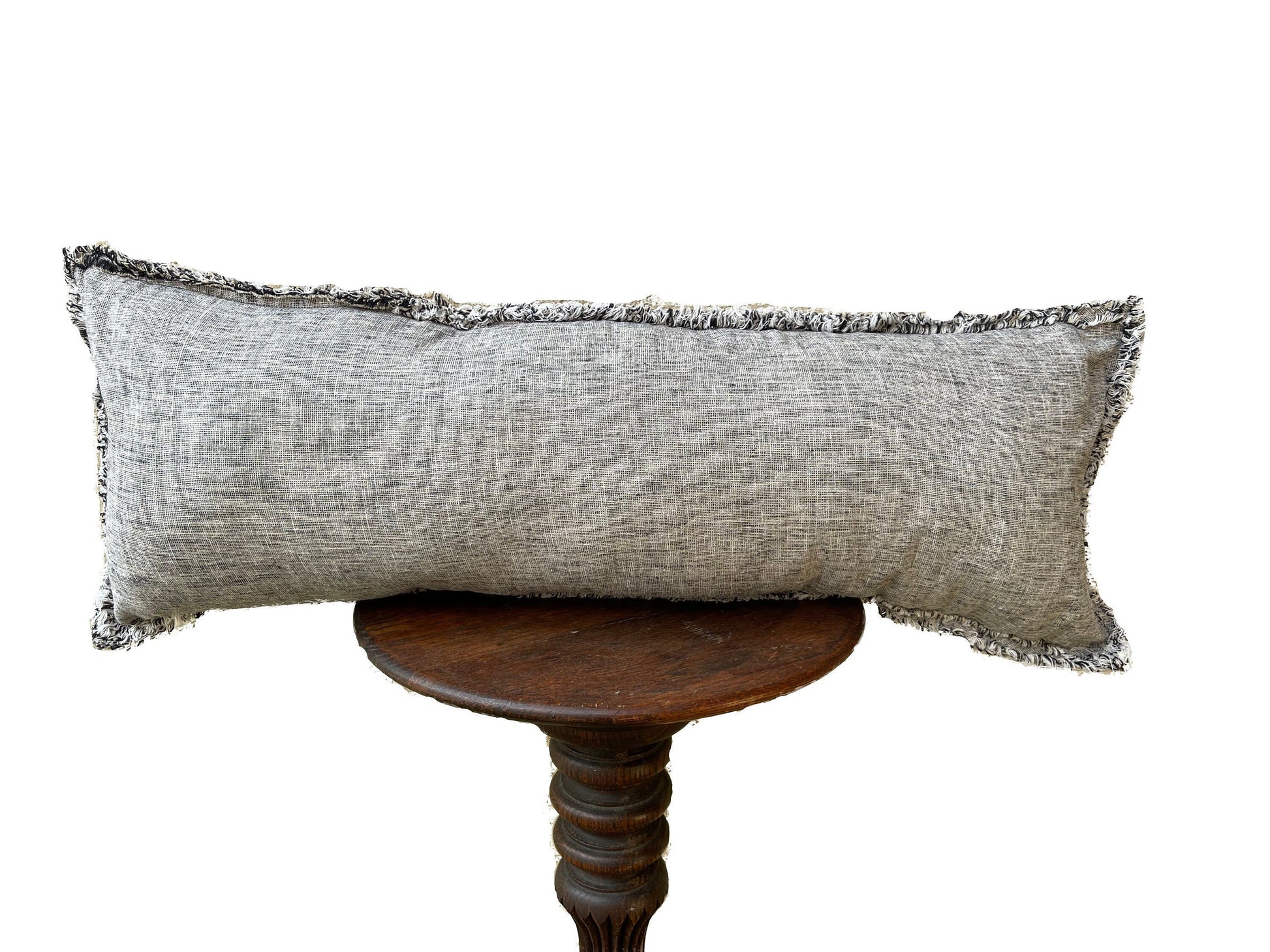 Layering is easy with our long skinny lumbar pillow cover. This salt and pepper linen goes with everything and makes the perfect finishing touch for your home decor look. The fringed border is that textured layering piece that adds depth and completeness to your decor look. A zipper back closure makes washing easy. This pillow cover is 28" x10".