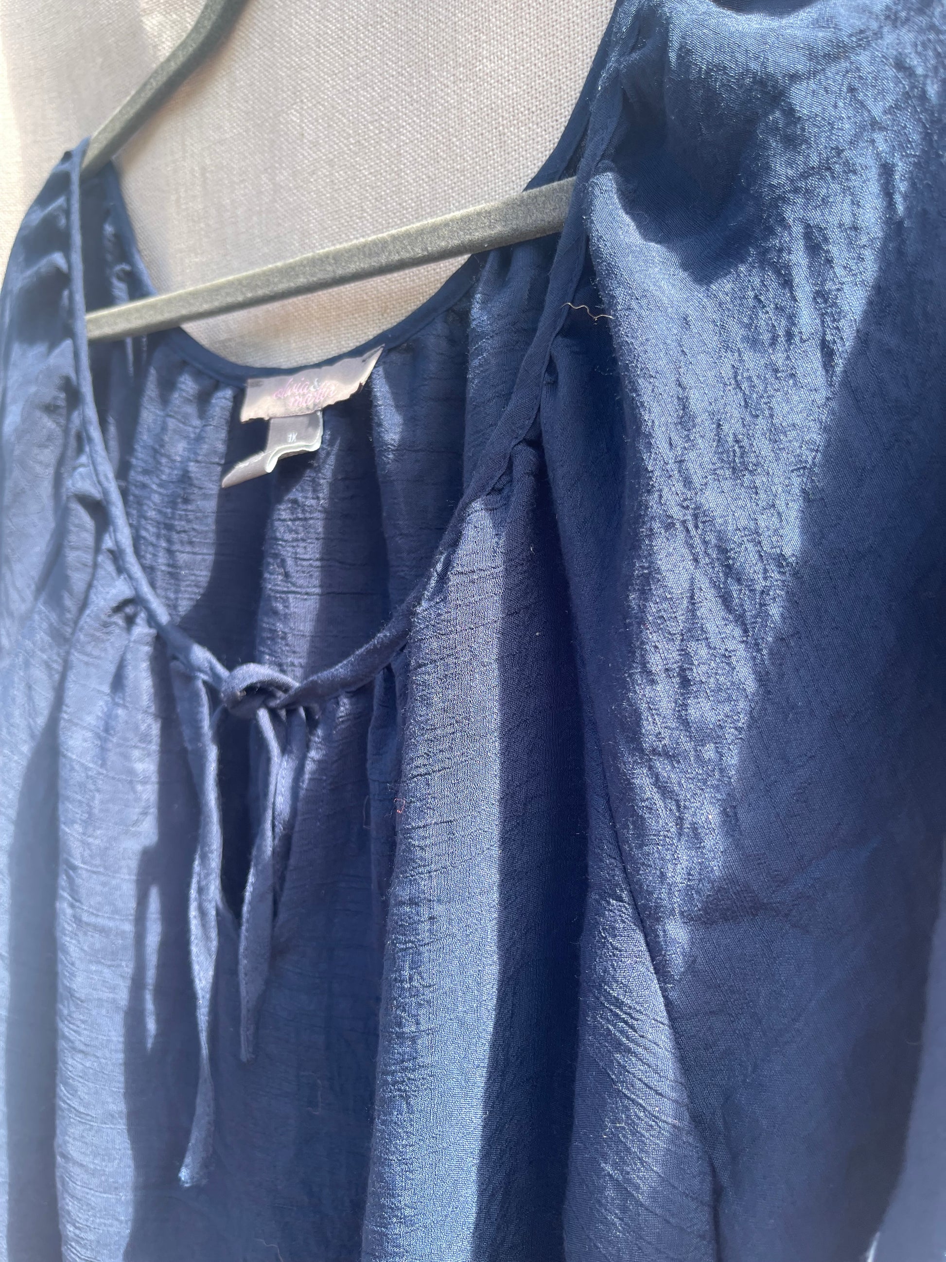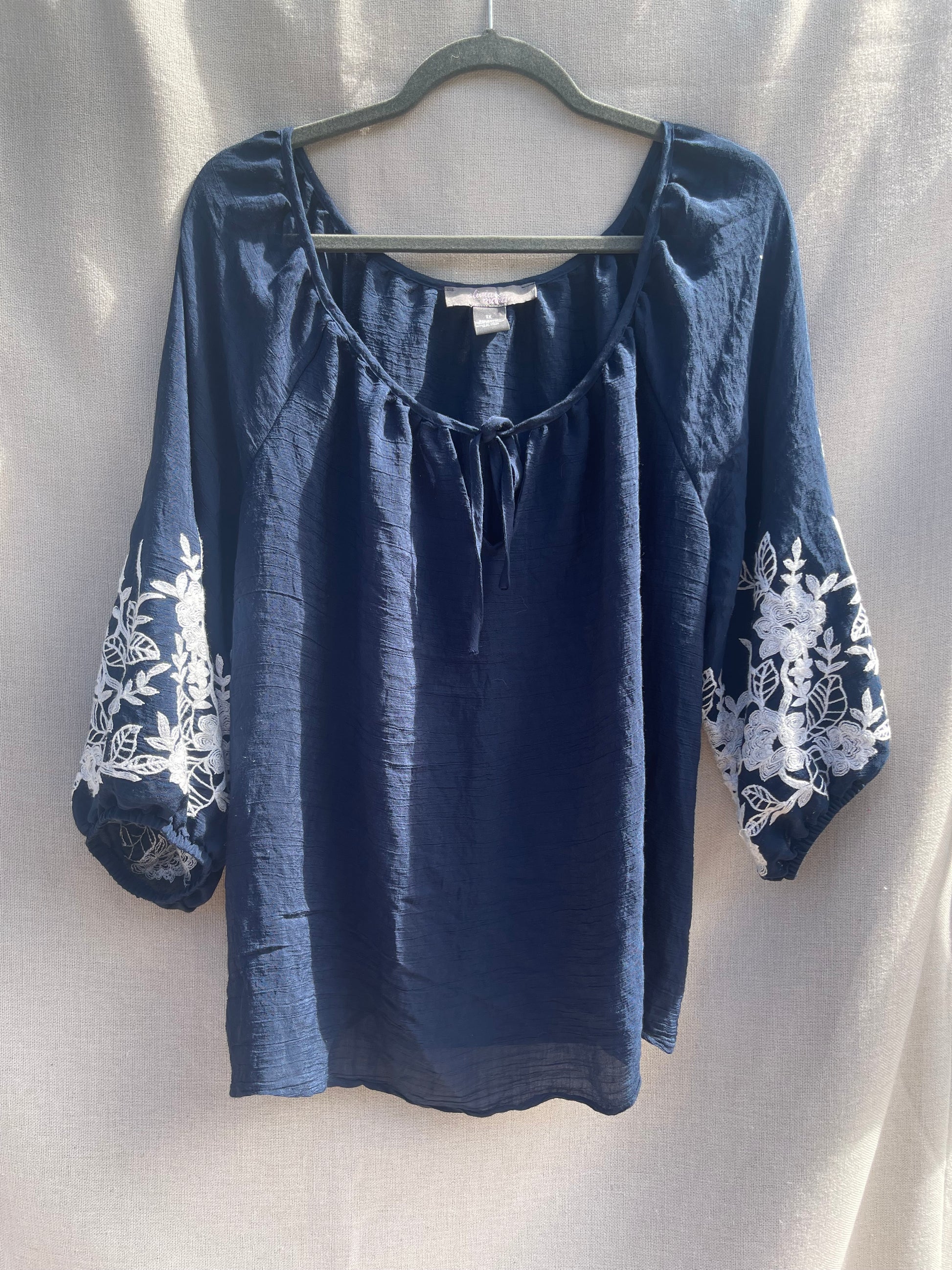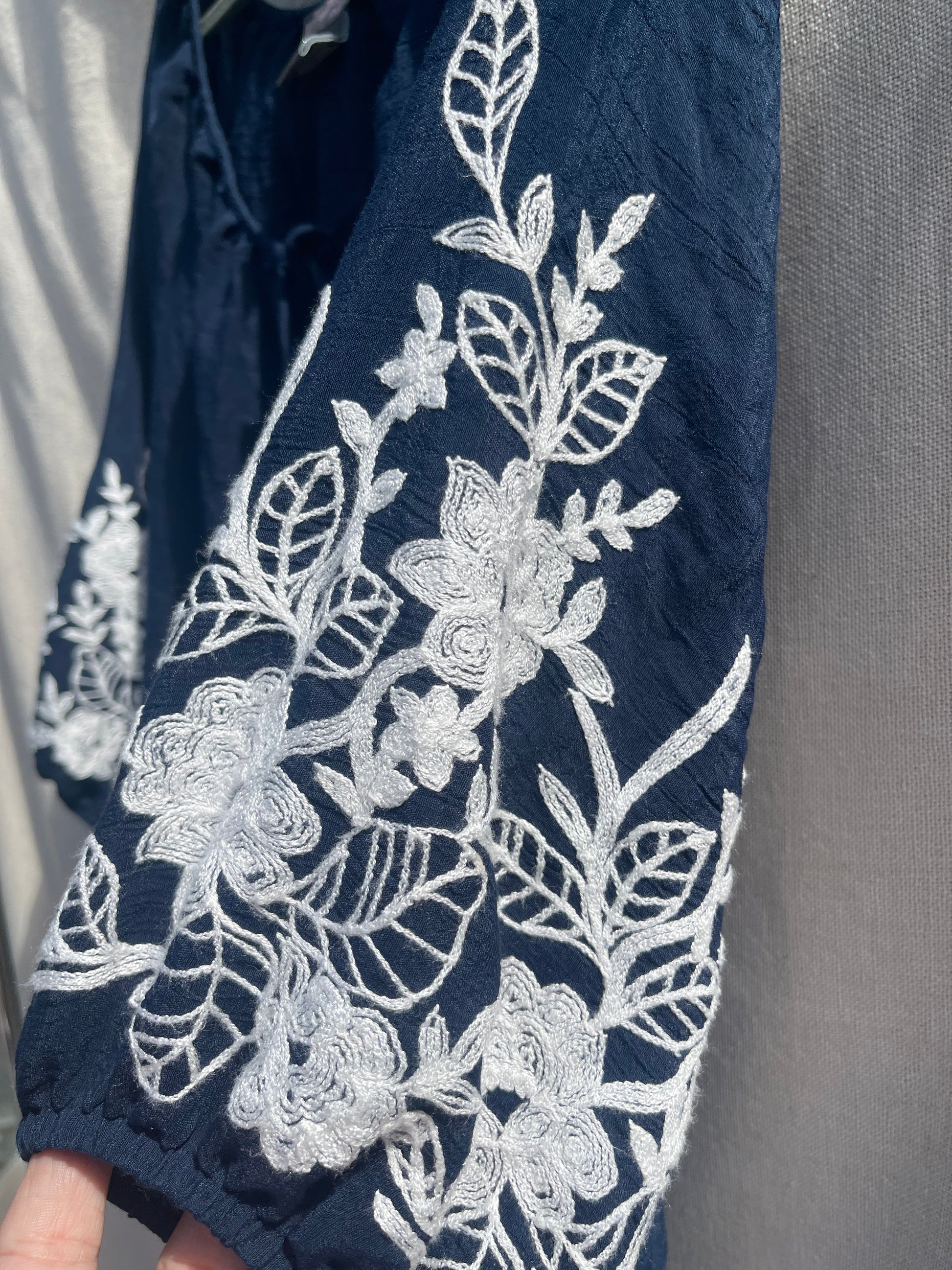 Navy embroidered blouse, reloved sustainable recycled clothing