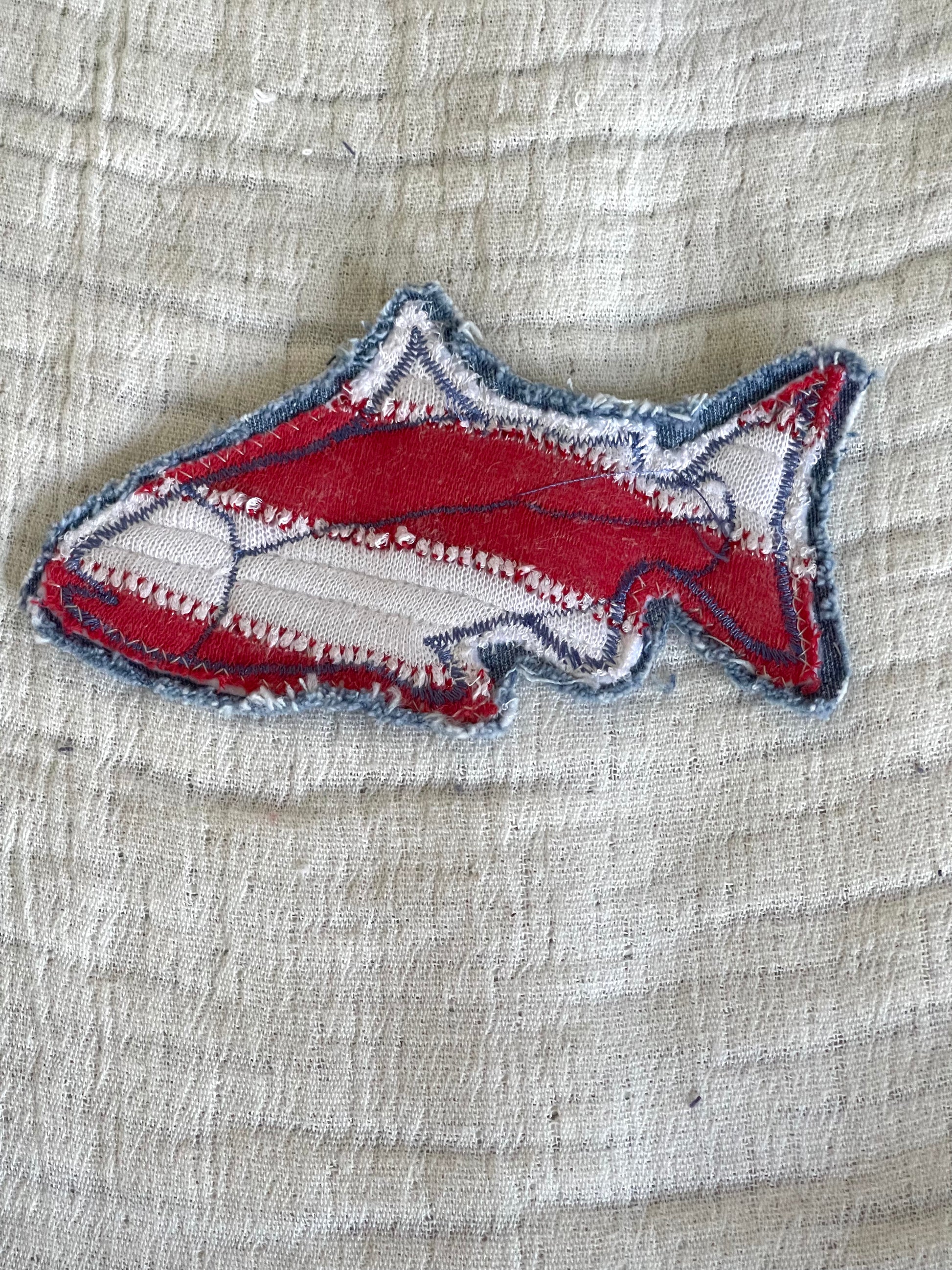Turn your favorite Jean shorts into this seasons patriotic holiday with our red white and blue themed hand crafted quilt embroidered patches. Meet your denim's new best buddy: the Fabric Fish Patch! This hand-sewn, repurposed wonder isn’t just a patch; it’s a splash of whimsy for your jeans (because who doesn’t want fish on their butt?). Each quirky fish is crafted from fabric scraps, like giving the old fabric a second chance at life. Perfect for a boho vibe or just when you want to swim against the tide of boring patches!