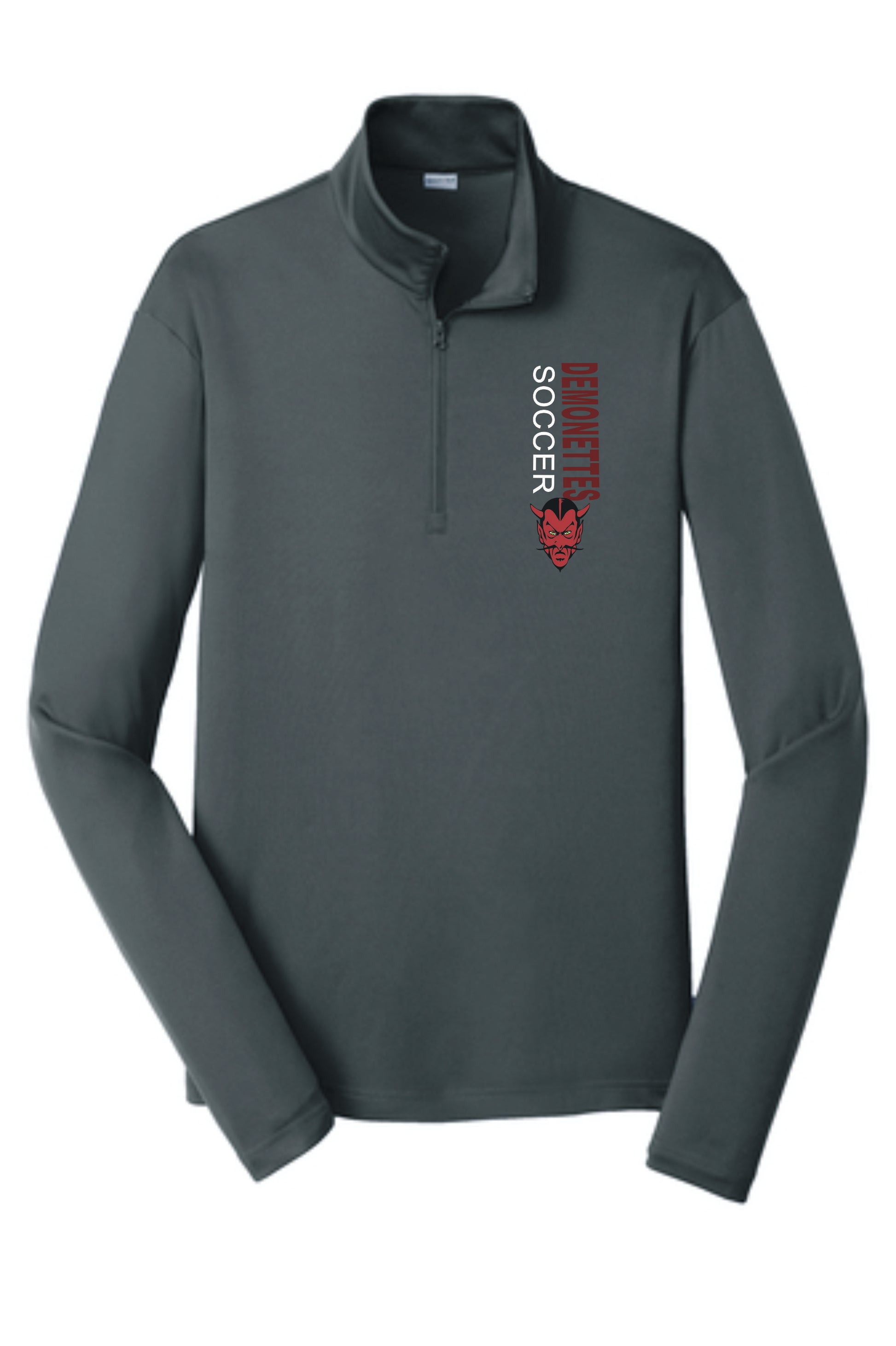 Layer up your season with this great weight performance moisture wicking quarter zip. We all know soccer season is about adding and subtracting layers as it can be 75 in the afternoon and 40 by sunset. This lightweight performance quarter zip is that perfect layering piece. Unisex sizing small-xxxl. Great team graphics