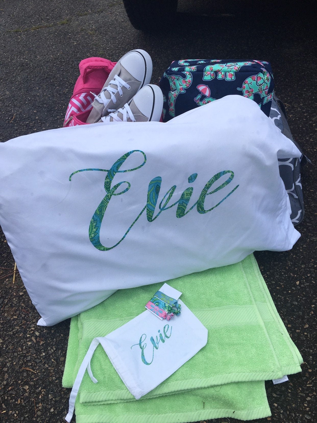 Personalize your bedding with a monogrammed or name pillow case. This print is done on a standard pillow case just for you Choose your pattern from the fun fabric choices in this listing. For you monogram You can have this in circle, scalloped circle, entwined, or master circle. If you are choosing your name we can do this in a fun script, or print font. Great for bedrooms and dorm rooms, camp, slumber parties