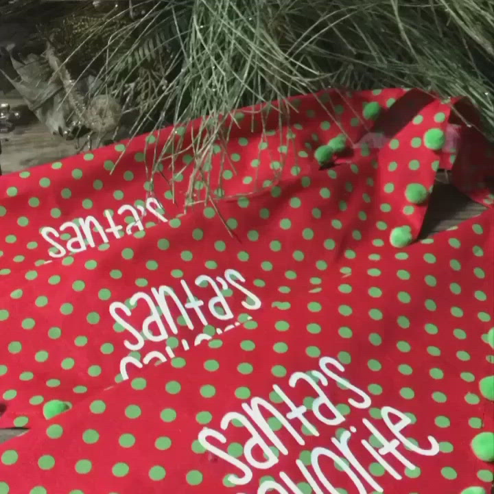Instaworthy pup pictures made perfect with this bright polka dot and pompom Santa’s favorite bandana. Don’t forget your pup this holiday season, made with live @baileywicks