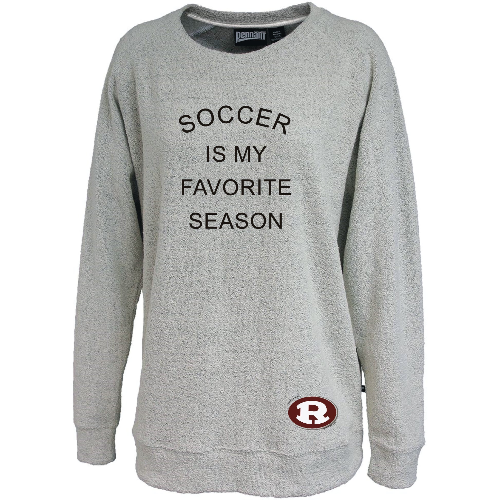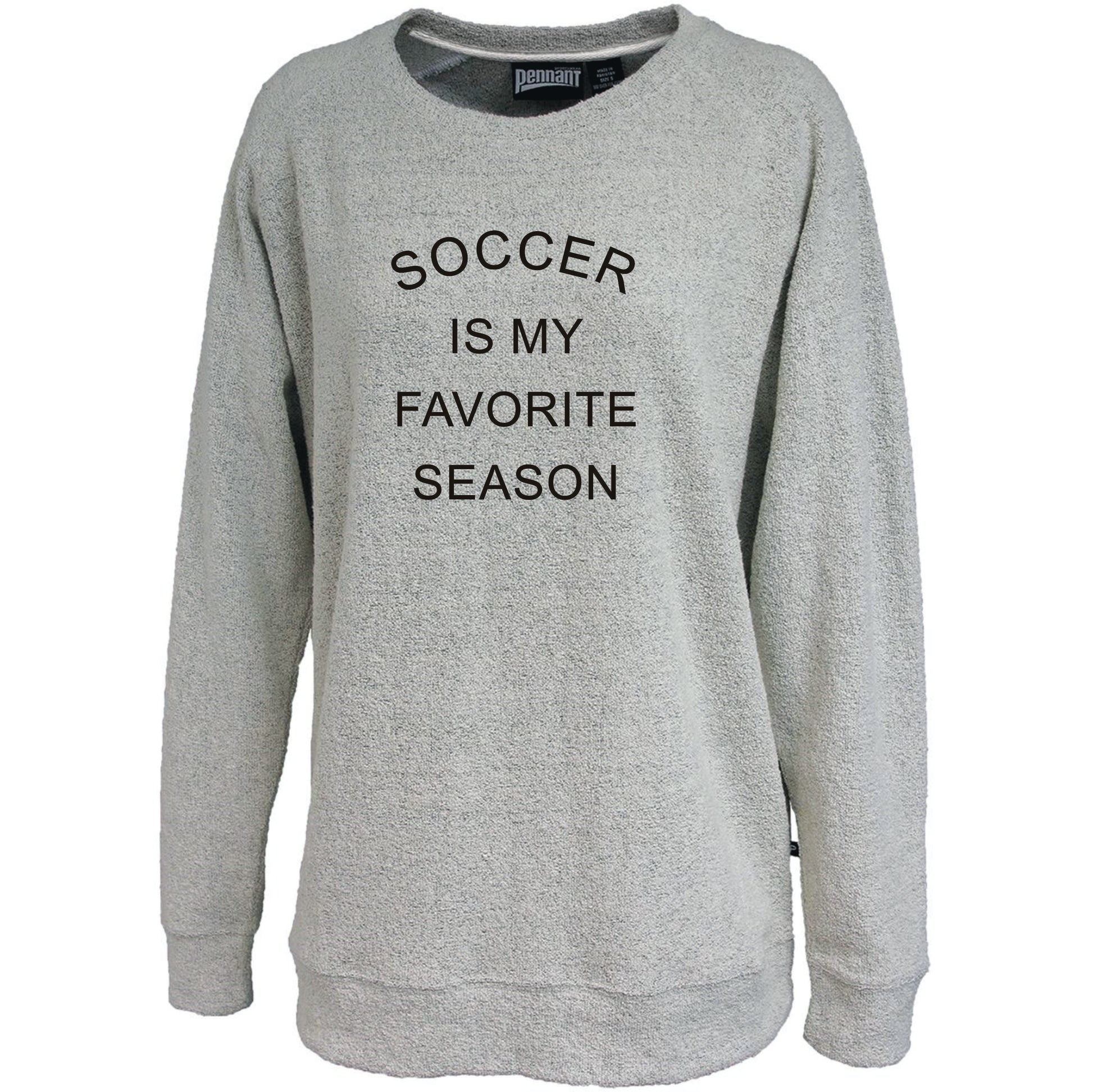 Soccer is my favorite season and this is my favorite sweatshirt. Cozy cotton soft texture poodle fleece in a ladies relaxed fit. This sweatshirt has a raglan sleeve, is a little longer fit with self cuffs and waistband. Literally one of the most comfortable sweatshirts I own.