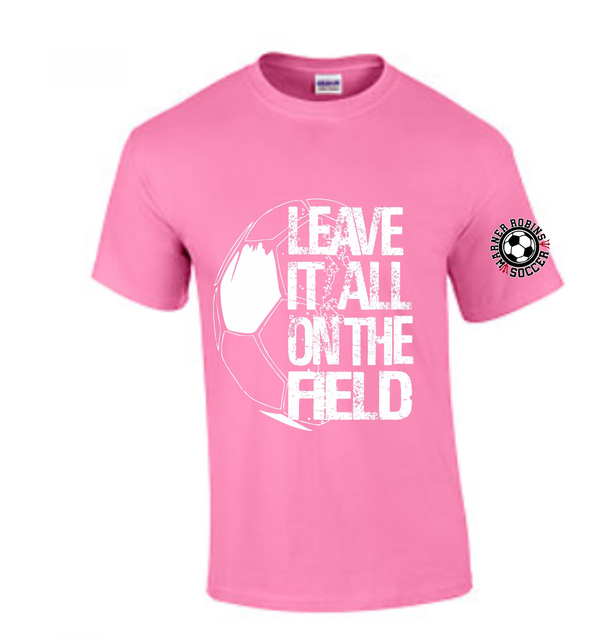 Leave it all on the field, everyday every game, every practice. The great graphics on this shirt are perfect for any soccer fan. Unisex sizing small-xxl Warner Robins graphic on the sleeve.