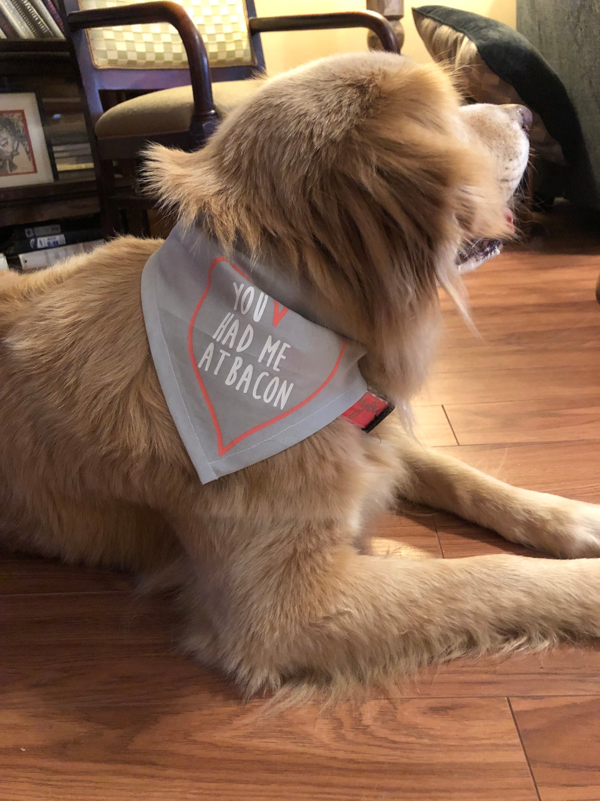 Valentines dog bandana, you had me at bacon