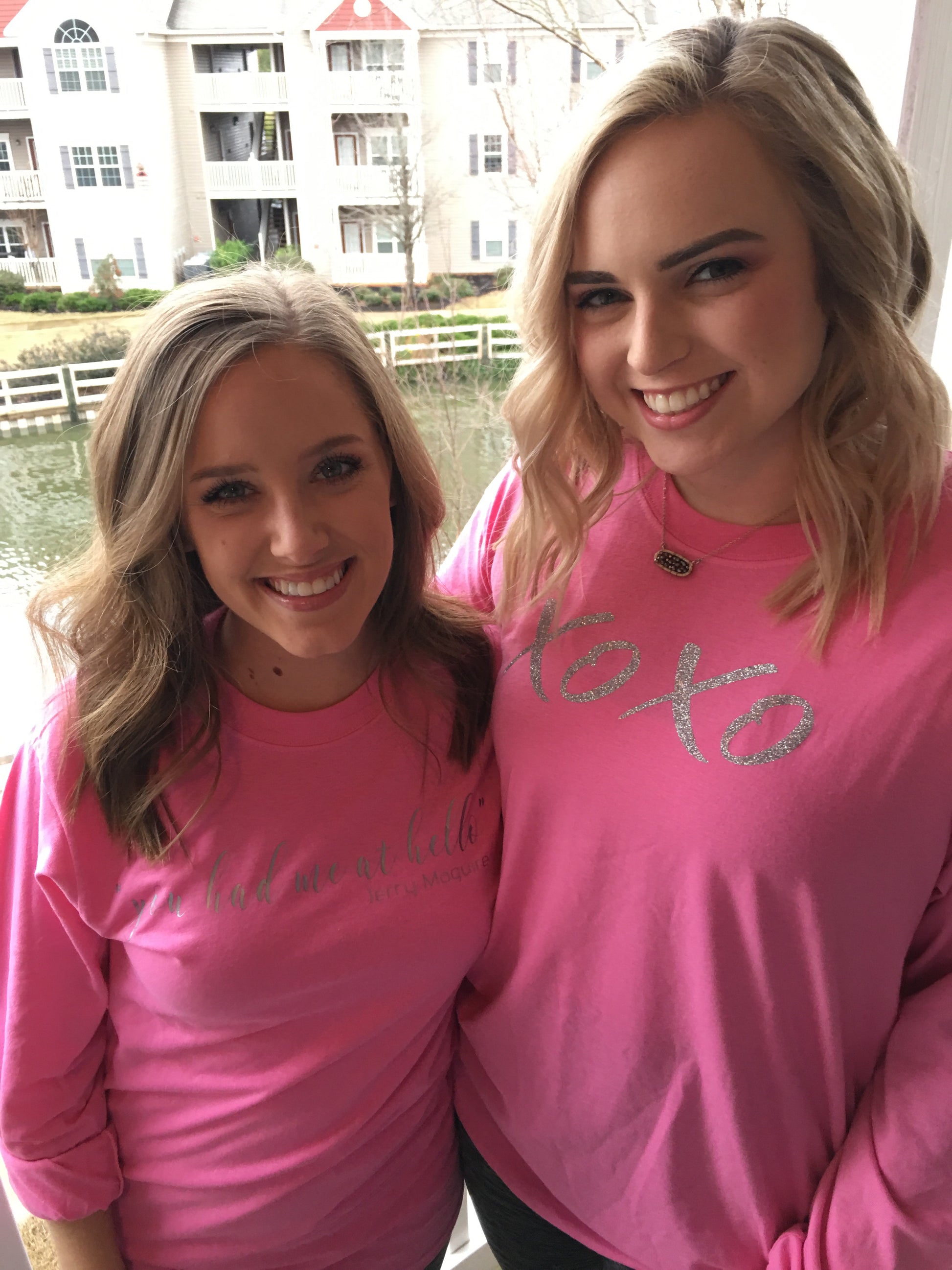 XO XO Valentine’s Day shirt. Clean sparkly graphics are fun for this holiday. Our silver glitter xoxo pops against the bubblegum pink long sleeve shirt. Treat yourself or a friend this Valentine’s Day. Unisex sized small- xxl.